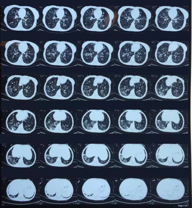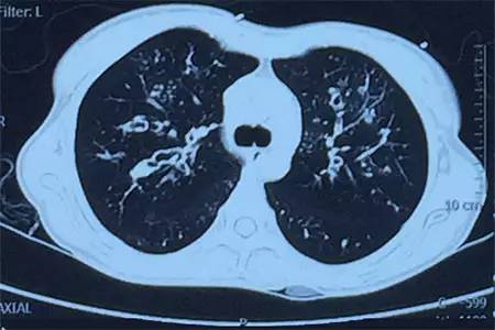 該患者肺部影像學表現(xiàn)為明顯的支氣管擴張,同時伴有彌漫的滲出斑片影,考慮合并感染,細菌學培養(yǎng)提示為綠膿桿菌,結(jié)合藥敏結(jié)果給予頭孢他啶+阿米卡星抗感染,患者存在II型呼吸衰竭予氣管插管機械通氣支持,加強體位引流排痰,治療18天,患者情況好轉(zhuǎn)出院。
