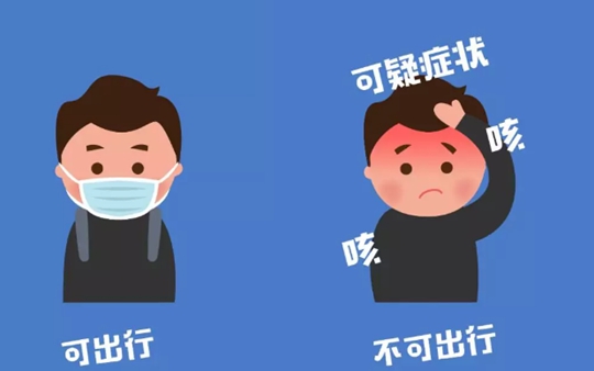 1、出行前,若無可疑癥狀(發(fā)熱、咳嗽、咽痛、胸悶、呼吸困難、乏力、惡心嘔吐、腹瀉、結膜炎、肌肉酸痛等),可正常出行。