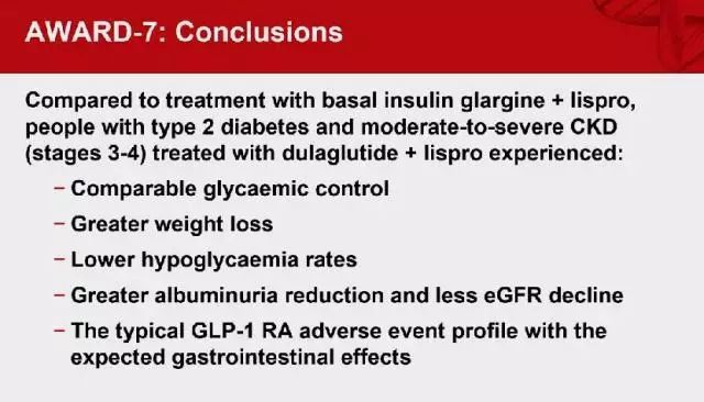 AWARD-7:對(duì)中重度慢性腎病的DM患者,杜拉魯肽血糖控制效果與甘精胰島素相當(dāng)